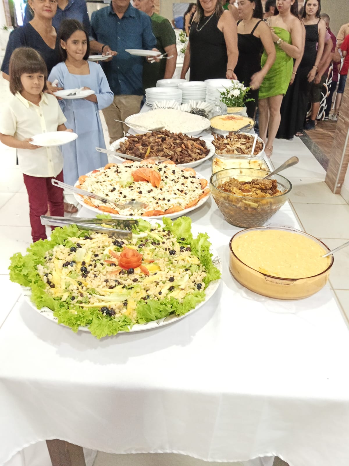 Da igreja ao salão, a alegria seguiu em procissão de afetos. A recepção, realizada no Clube As Francelinas, reuniu familiares e amigos para compartilhar sorrisos, abraços e boas energias. Cada olhar que encontrava o dela trazia um desejo, uma lembrança, uma parte da vida que vem sendo construída com amor, dedicação e sonhos.